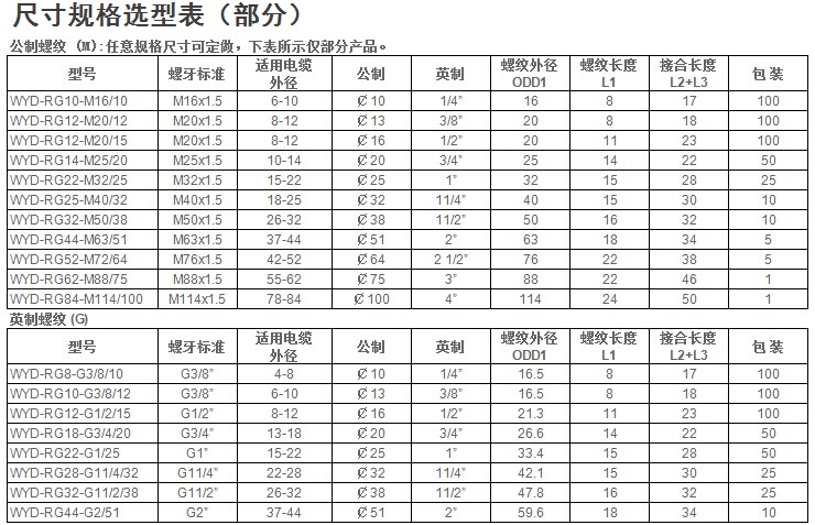螺牙規(guī)格:公制牙(Metric/EN50262)、PG牙、G(PF)牙以及美制牙(NPT),各種規(guī)格可接受訂做