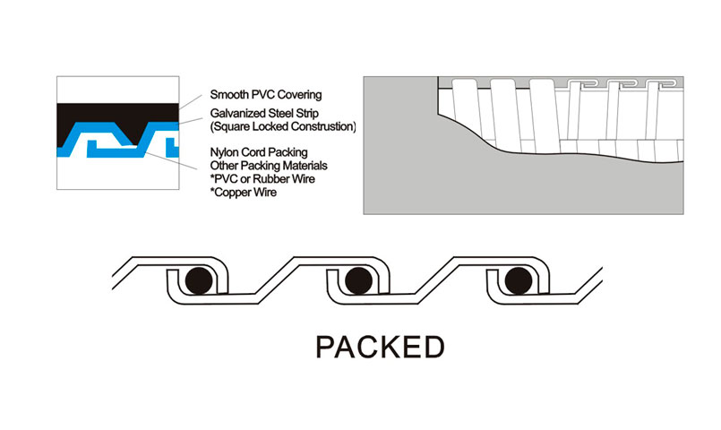 產(chǎn)品材質(zhì): (內(nèi)層)采用鍍鋅鋼帶及特殊絕緣處理;(外層)采用PVC原料(抗紫外線、防老化、阻燃)。