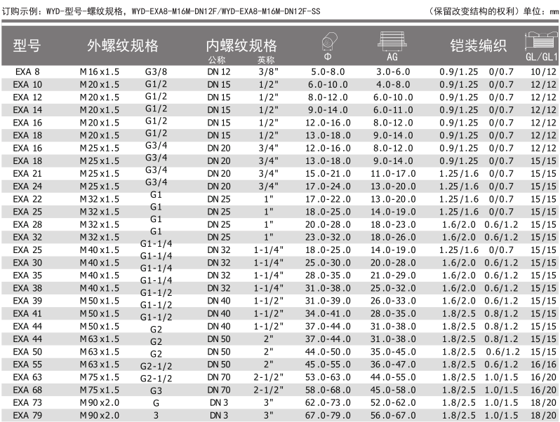 螺牙規(guī)格:公制螺牙(Metric),美制螺牙NPT,英制螺牙G,德制螺牙PG